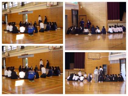 全体への話が合った後、各クラス4隅に分かれて学級委員からの話です。