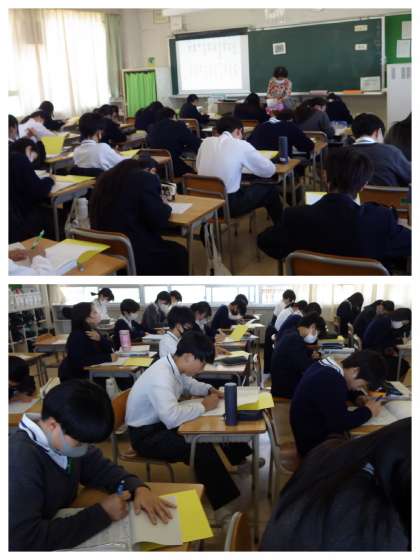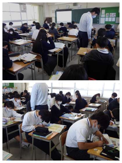 国語の授業では、静かに、漢字テストの真っ最中でした。
