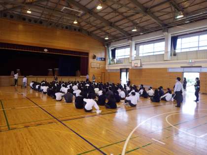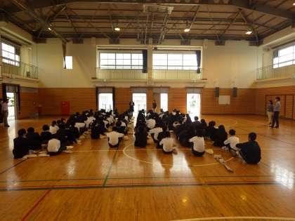 2年生は、月曜日から宿泊学習なので、事前指導を体育館で行いました。
