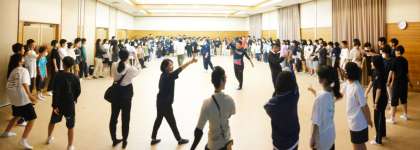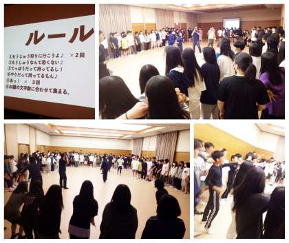 大きな円になって、声を揃えて、よく聞いて、ダッシュで動きます。