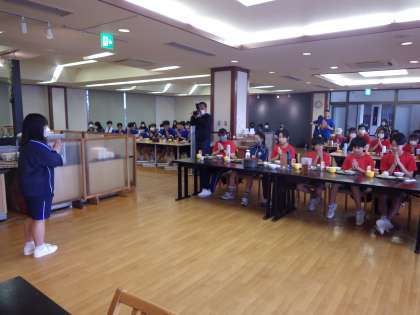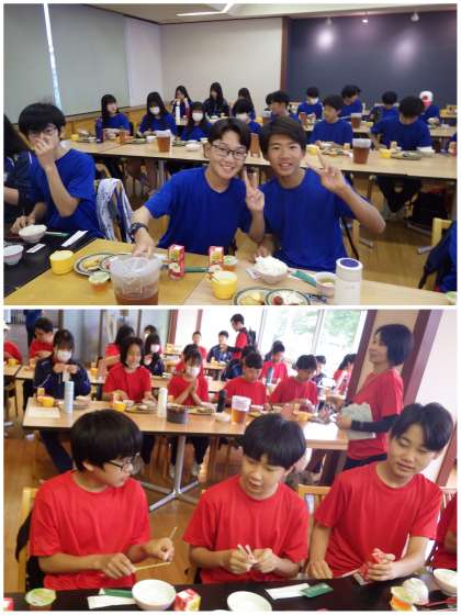 2年生、みんなの支度が早く整ったので、少し早めに朝食がスタートです。