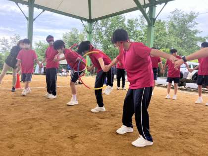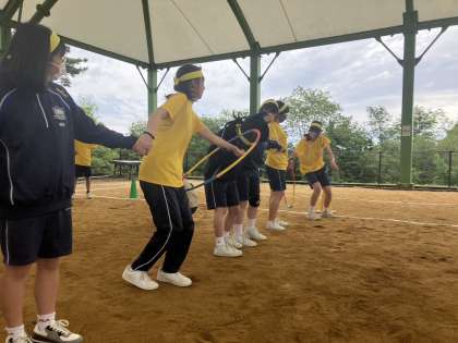 2年生、3・4組は比良トピアでコミュニケーションゲームをしています。