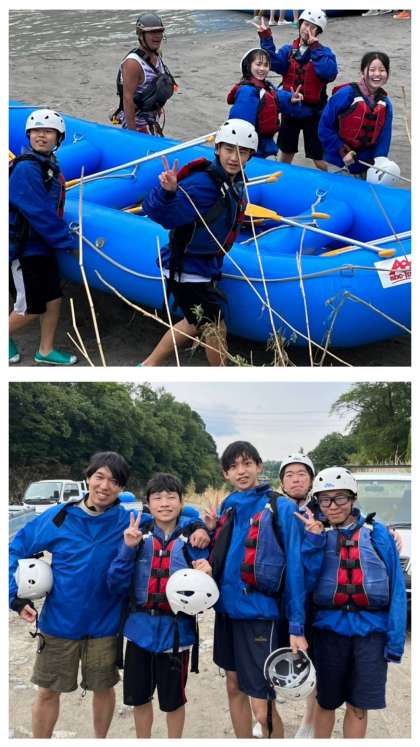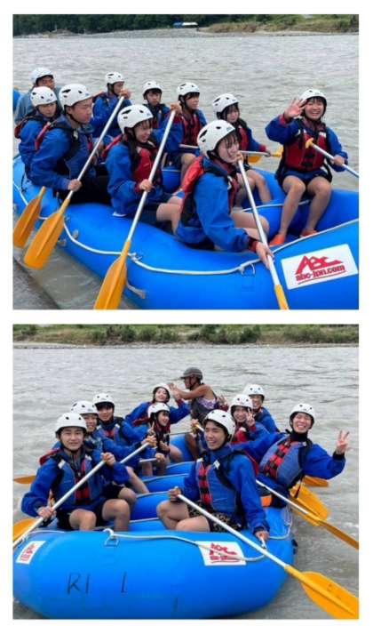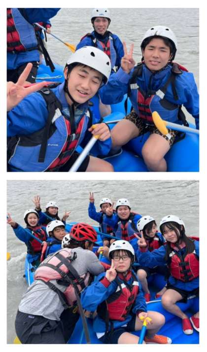 3年生の修学旅行、2日目のラフティングは、天候の心配、川の増水の心配もありましたが、写真を見ていただくとわかるように、とっても楽しめてしっかり満喫しました!