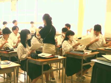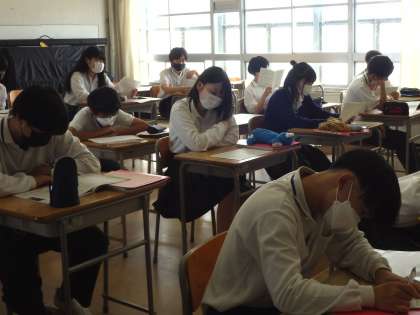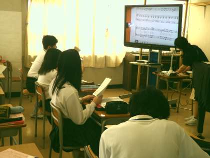 3年生の音楽の授業では、合唱の楽譜が配られて練習が始まりました。