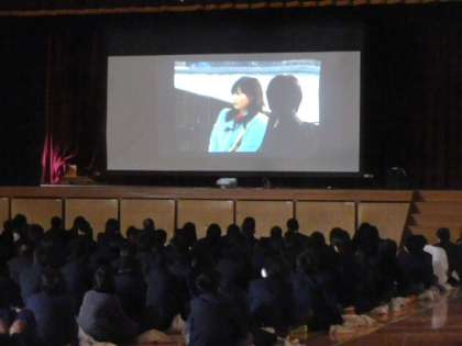 先週行われた各クラスごとの事前学習に引き続き、本日(2/20)は学年全体でビデオ教材を活用して考えを深めました。