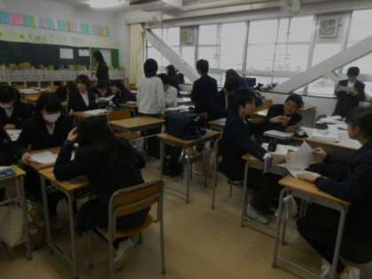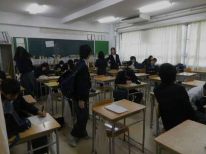 学年末テストを明後日に控え、先日行った「なるまでテスト(基礎基本確認テスト)」の結果を参考に、生徒個々が自主的に行う学習会と先生が分からないところをもう一度教えてくれる補充的な勉強会が開かれており、今日はその2日目です。