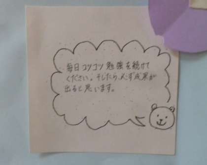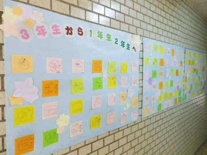 玄関ロビー付近には、3年生から1・2年生へ、激励のメッセージが掲示されました。先輩としての経験から後輩へ送る卒業前のエールです。