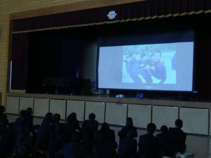 最初は、入学から今日までのたくさんの思い出をVTRやスライドにまとめ、みんなで振り返りました。懐かしい想い出が甦ります。