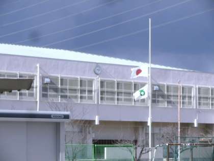 校内は明日の卒業式の準備の途中でしたが、生徒及び職員が作業の手を止め、静かに目を閉じました。