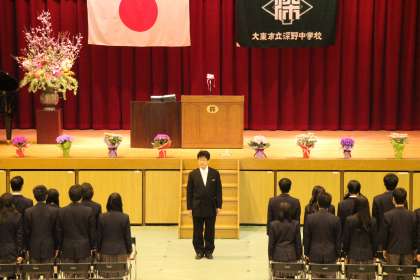 いつも深野中学校を見守ってくださり、お力添えをいただいた保護者、地域、関係の皆様方に、心から感謝申し上げます。おかげをもちまして、3年生は今日無事に本校を巣立っていくことができました。