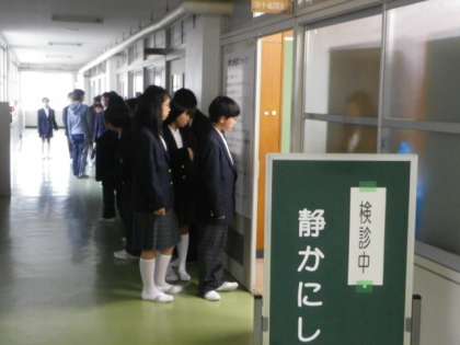 生徒たちはみんな、静かに並び、静かに検査を受けることができていました。