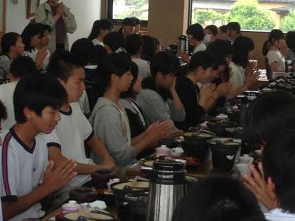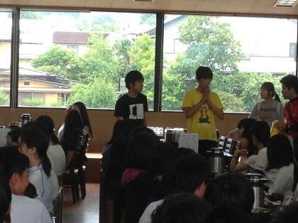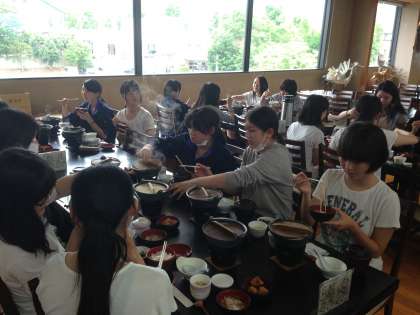 まずは、スタミナ補給のお昼ごはん。みんな元気に食べています。