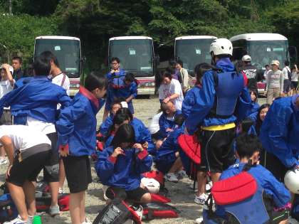 インストラクターからの指導を受け、今日は少し流れが速い天龍川の水へ入って行きます!