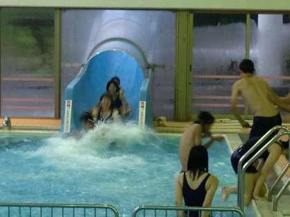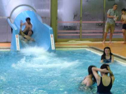 夕食後は、お楽しみの室内プールタイム。