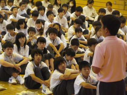 最後に、生活指導担当の先生から、安全で楽しい夏休みになるよう注意してほしいことと、激励の言葉がありました。