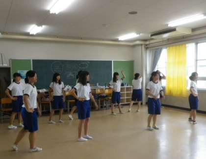体育大会女子ダンス練習に向けて、3年生ダンス委員のリーダー練習が連日続いています。2学期からの学級・学年・全校指導では頼りにしています。