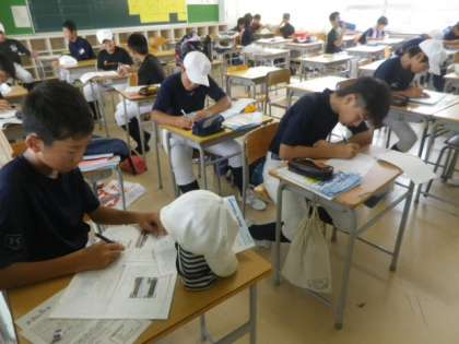野球部は、練習前にクラブでの学習会を行っています。