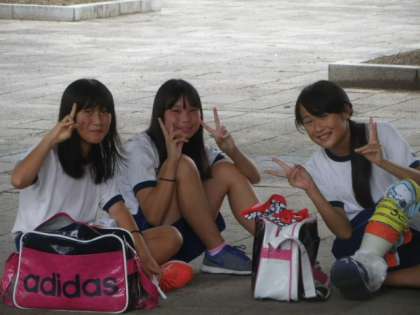 7:30から深北緑地での早朝練習をすでに終えた陸上競技部。 練習後のさわやかな部員の笑顔です。
