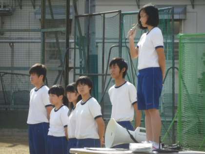 体育大会に向けての全体練習も、生徒会役員(体育大会は前期役員が担当)や体育委員の綿密な打ち合わせにより、生徒主導で進んで行きます。