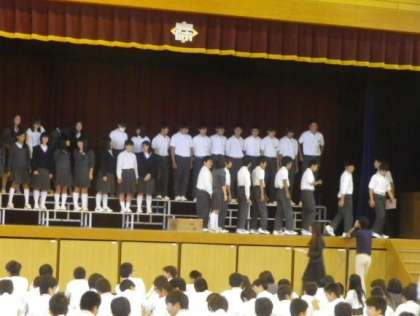 文化学習発表会に向けて 〜2年生 合唱隊形の確認〜