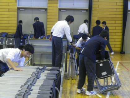 明日の中間発表会を前に、2年生が会場準備をしてくれました。