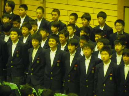 初めての深中コーラス・コンクールにどのように取り組んできたかを表現する時です。 緊張と戸惑いの舞台だったと思いますが、精一杯歌ってくれました。