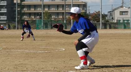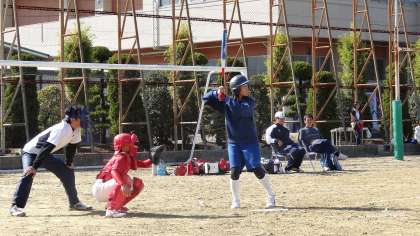 緑風冠高校グラウンドでは、ソフトボール部の練習試合が行われていました。