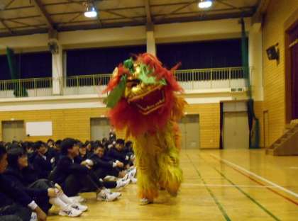 テレビなどではときどき見ることがありますが、実際に見るとやはり迫力満点! 生徒の参加もあり、楽しい時間を過ごしました。
