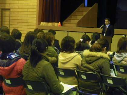 お忙しい中、またあいにくの天候の中、多数お集まりいただきありがとうございました。1時間以上にわたってお話と説明をさせていただきましたが、今後も何かご不明な点やご意見等がございましたら、ご遠慮なく中学校へお問い合わせください。