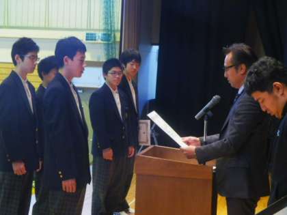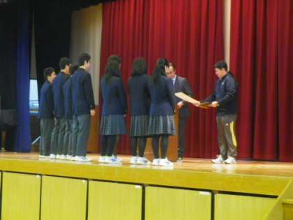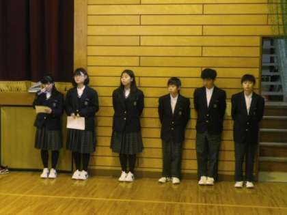 司会進行は後期生徒会役員。 ていねいにしっかりと進めてくれています。