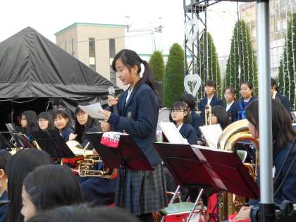 12/5(土) 住道駅前デッキにて吹奏楽部が「大東市スマイルミネーション」に出演しました。