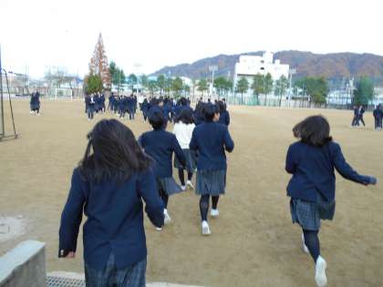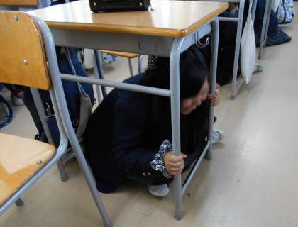 今回の訓練は、教員から 「机の下に入りなさい!」 とか 「廊下に出てグラウンドに避難しなさい!」 などの指示はせず、事前に、「これまでの経験や知識から自分たちで考えて行動する訓練」 として予告をしました。