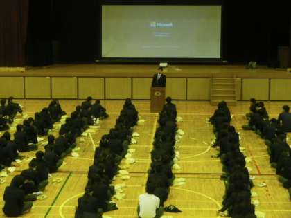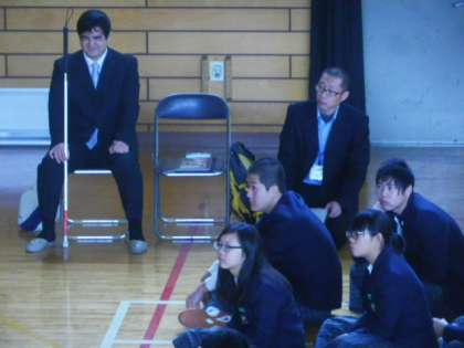 大東市内の中学校を卒業後、公立高校、公立大学・大学院に進学して勉学に励み、来春からは、東京の医薬製品開発会社に就職が決まった視覚に障がいがある方にご来校いただき、生活や考え方についてお話を伺いました。