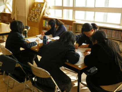 午前中には 全学年対象 「まなび舎」が、引き続き午後からは 3年生対象入試対策 「FBI」 (写真) が開室され、自主的に勉強を行うために何人かの生徒が登校しています。
