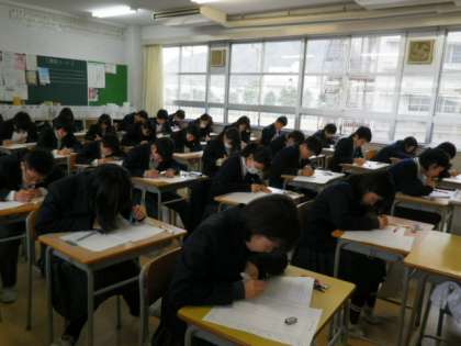 3学期授業初日の今日、3年生はさっそく実力テストです。