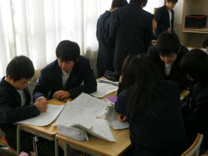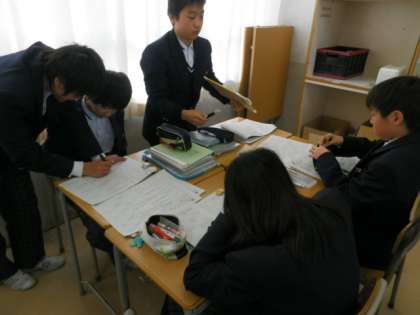 1年生数学科 全員理解をめざして(班学習で冬休みの宿題振り返り)