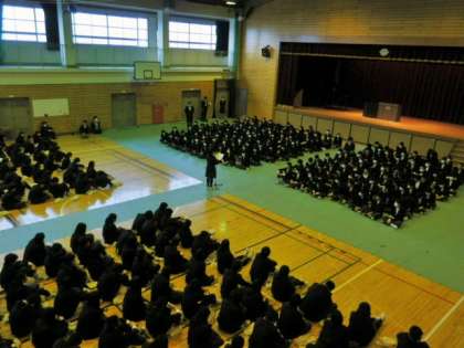 土曜日はいよいよ第43回卒業式。 今日は生徒会の主催で、ほんの少し早い 卒業生と在校生の 「お別れ (離別式)」 を行いました。