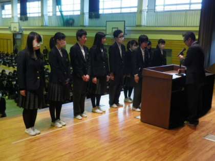 表彰された9人の生徒は大変立派だったと思います。 よくがんばりました!