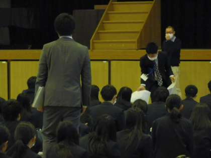 本日午後、一般選抜に挑む132名の生徒が体育館に集まり、最終の打合せを行いました。 天気予報では 明日は雨も上がるようです。 今晩はしっかりと睡眠をとり、落ち着いて入試に臨んでください。
