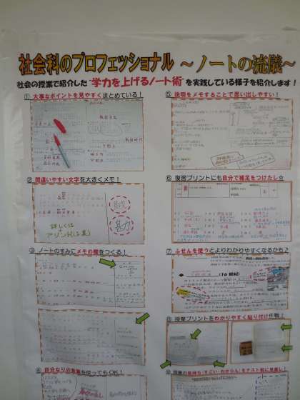 学習ノートの取り方いい見本(社会科)、3年生進路情報