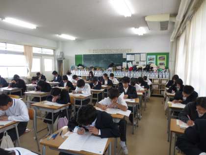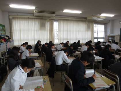 リーディング35問とリスニング25問に、1年生が真剣に取り組んでいました。