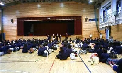 2年生全員が楽しみにしていた宿泊学習。天候が心配されたが雨も降らず、目的地にむけて出発。