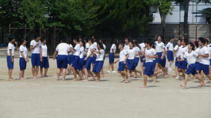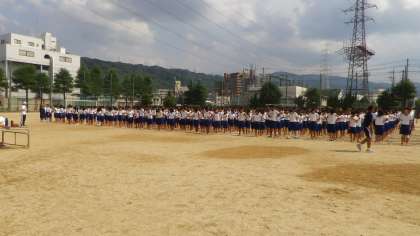 体育大会の練習が、体育の授業、学年での練習に続き、全学年合同での練習に進んできています。