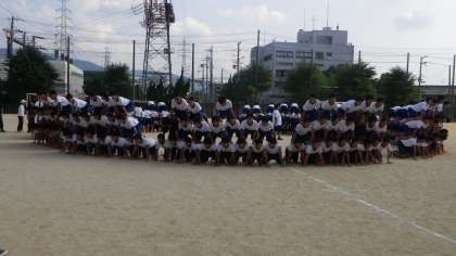 この日の男子は、授業で覚えた動きと全体での位置関係を全学年で確認しながらの練習でした。