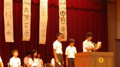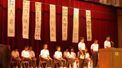 また、これまで一生懸命活動してくれた前期生徒会役員の皆さんは、本当にごくろうさまでした。ありがとうございました。