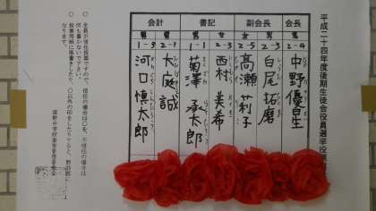 先日行われた「平成24年度 後期生徒会役員選挙」での投票の結果、全校生徒の支持を得て次のみなさんが後期生徒会役員に信任されました。
