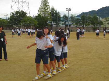 p月11日(月)の放課後、グランドでは「むかで競争」「2人3脚」に出場する選手たちの自主練習が熱心に行われていました。