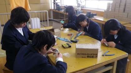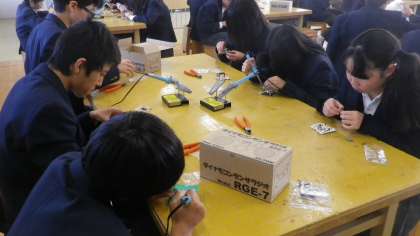 この時間は、ラジオ製作。普段は馴染みの薄い工具を使って一生懸命でした。