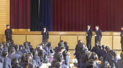 始業式終了後、1年生では転入生の紹介がありました。新しい仲間のあいさつに、皆が拍手をする様子が微笑ましかったです。