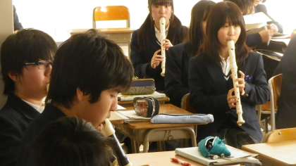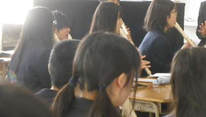 2年生音楽の授業では、リコーダーに取組んでいました。